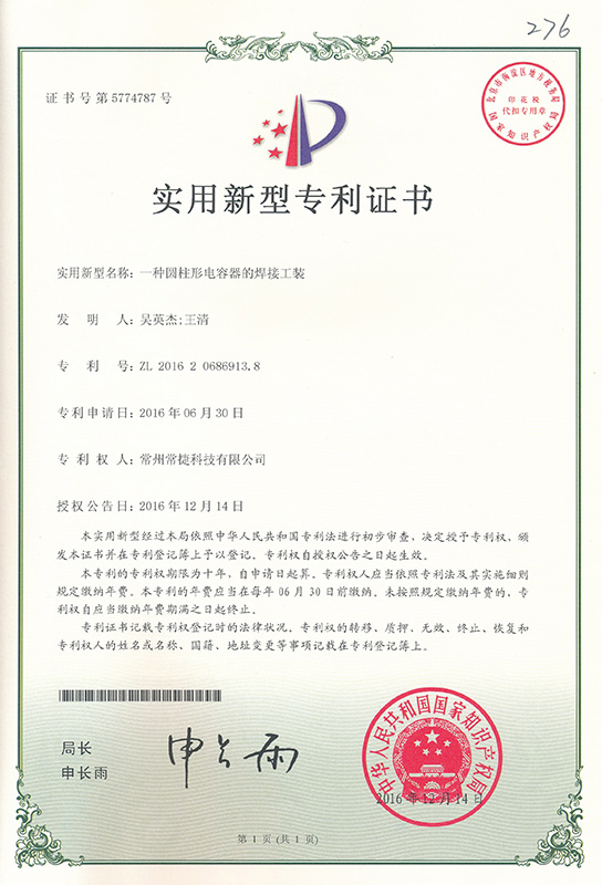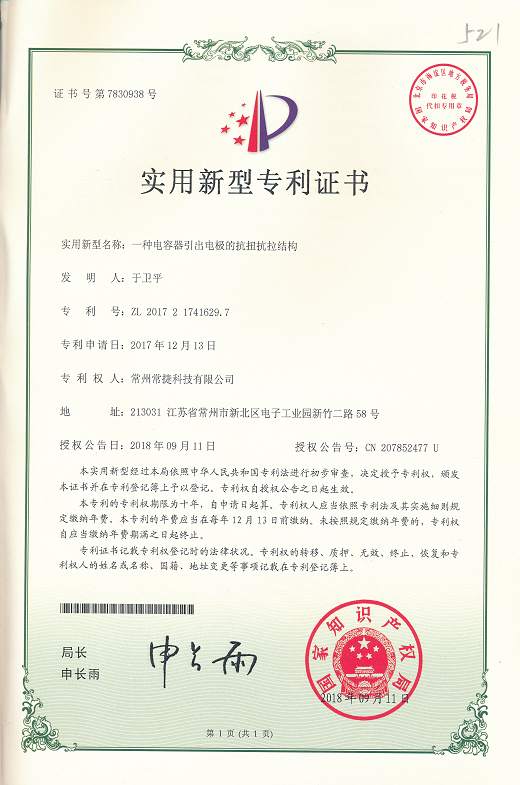 | 高新技術企業 | 工程技術研究中心 | 江蘇省新能源金屬化薄膜電容器工程技術研究中心 | 常州市名牌產品 |