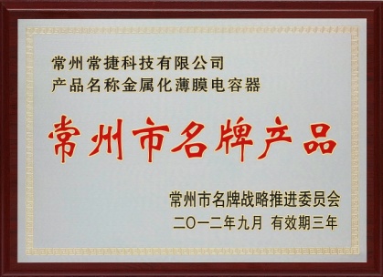 年公司生產的金屬化薄膜電容器獲得常州市名牌產品